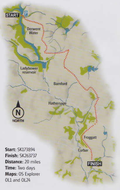 So enough of the romantic notions and down to the nitty-gritty of the concept. The idea is simple enough, it is to cover in excess of 20 miles over a two-day period carrying all my supplies and equipment on my back and camping overnight at approximately the halfway point. The start point will be at the northern end of the edges at the top most end of the Ladybower Reservoir and the end point will be down at the southern tip of the edges in the village of Baslow.