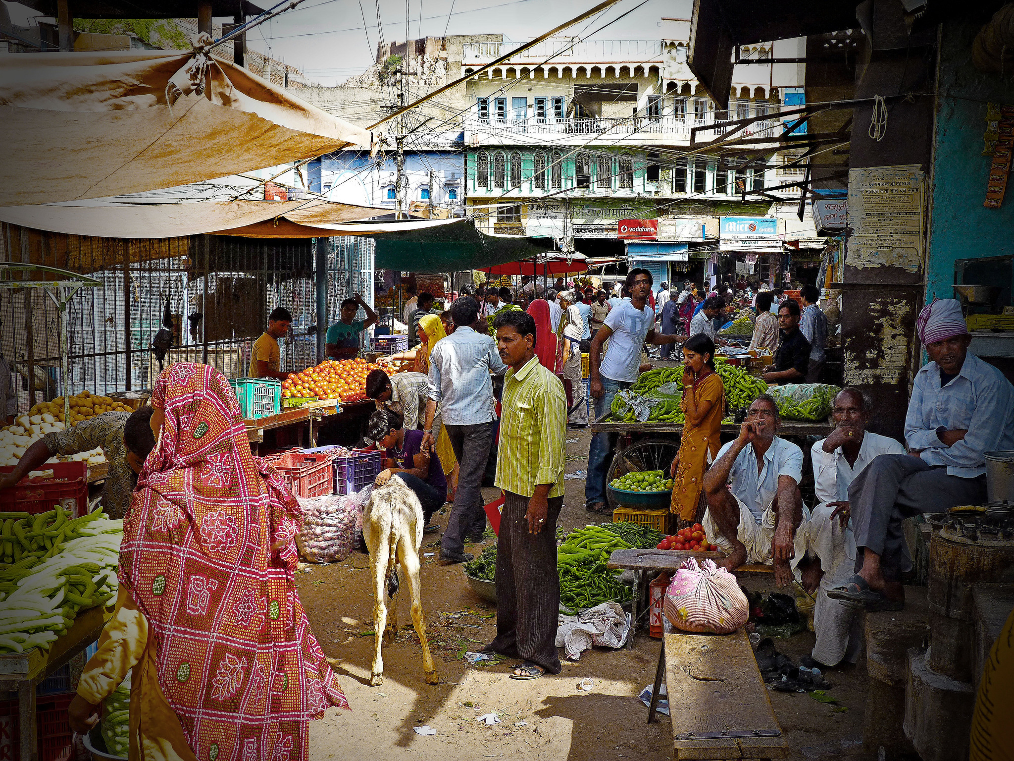 With an air of inevitability we found ourselves oscillating towards the market area in the centre of town. Here we walked first hand amongst the hustle and bustle of everyday rural Indian life. Although we were obviously the only westerners for miles around we were neither hassled nor stared upon, and were left to go about our business the same as anyone else. All of life could be seen within this relatively small area of town crammed into the small maze of streets and alleyways that did their best to confuse the traveller from afar.