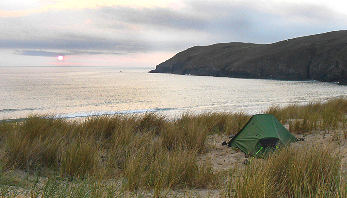 Wild camping on a secluded beach along The South West Coast Path