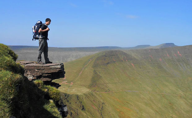 The obligatory heroic photos were taken of each other teetering on the famous ‘Diving Board’ on Fan y Big before we pressed on towards Gwaun Cerrig Llwydion.