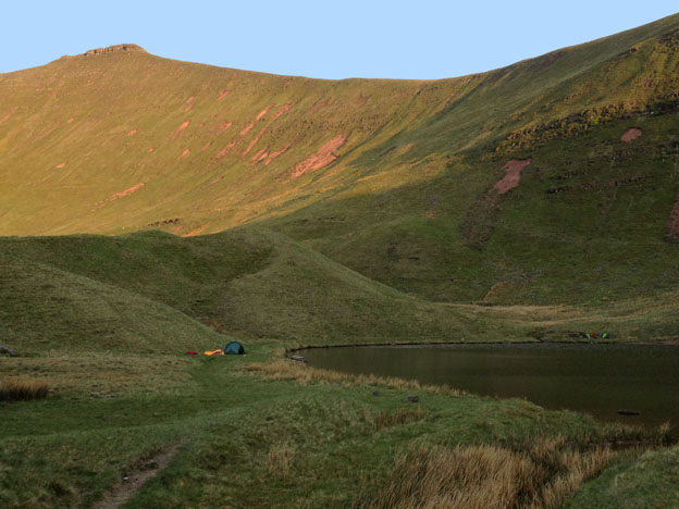 Once on the top of Corn Du we could see the small glacial lake below of Llyn Cwm Llwch, our camp spot for the night. We eagerly yomped down towards this isolated lake more than ready to jettison our packs and pitch for the night in this incredibly tranquil setting.