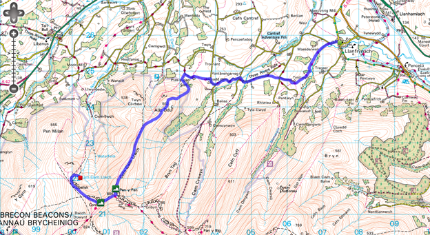 Day 1 – LLanfrynach to Llyn Cwm Llwch