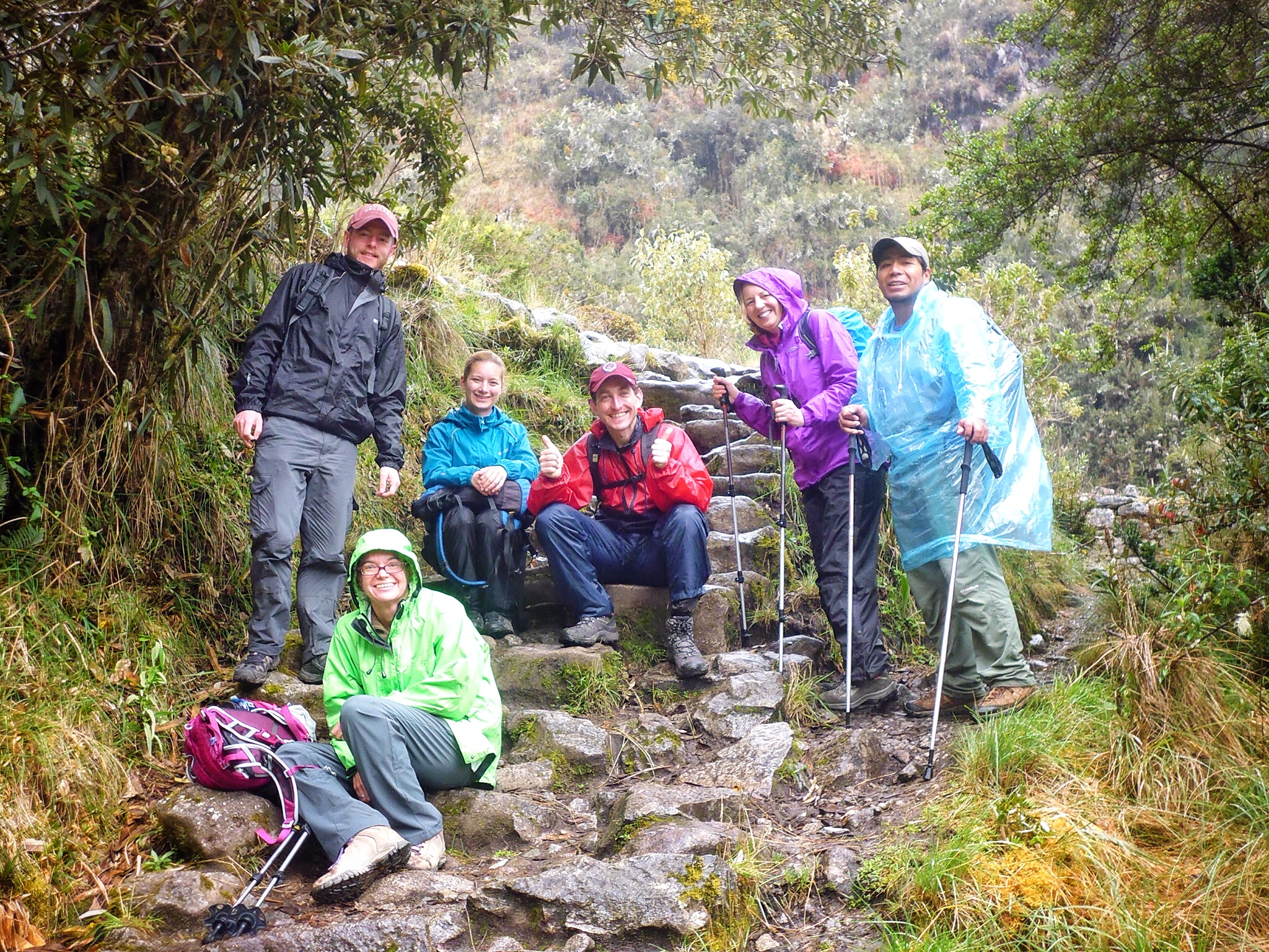 The scenery becomes very mountainous on this part of the trail due to the altitude and the weather markedly cooler. We descended towards the campsite used by most trekking groups at Pacamayo (3,500m). Here we paused to drink some much needed fluids and donned our waterproofs for the first time on the trek as the heavens began to open above us.