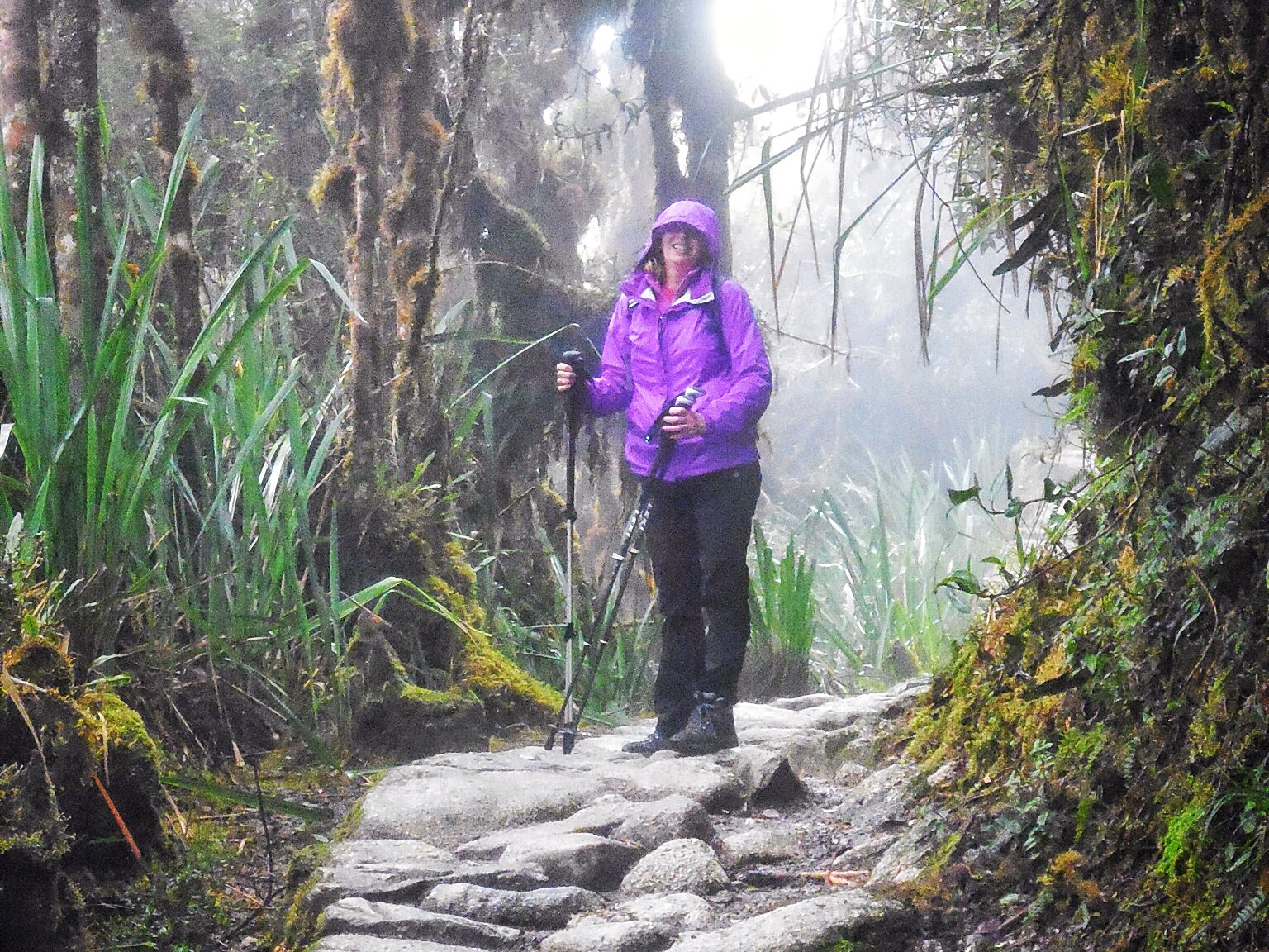 From here the path descends into beautiful cloud forests full of orchids, hanging mosses, tree ferns and flowers before passing through the famous Inca tunnel, carved into the sheer rock.