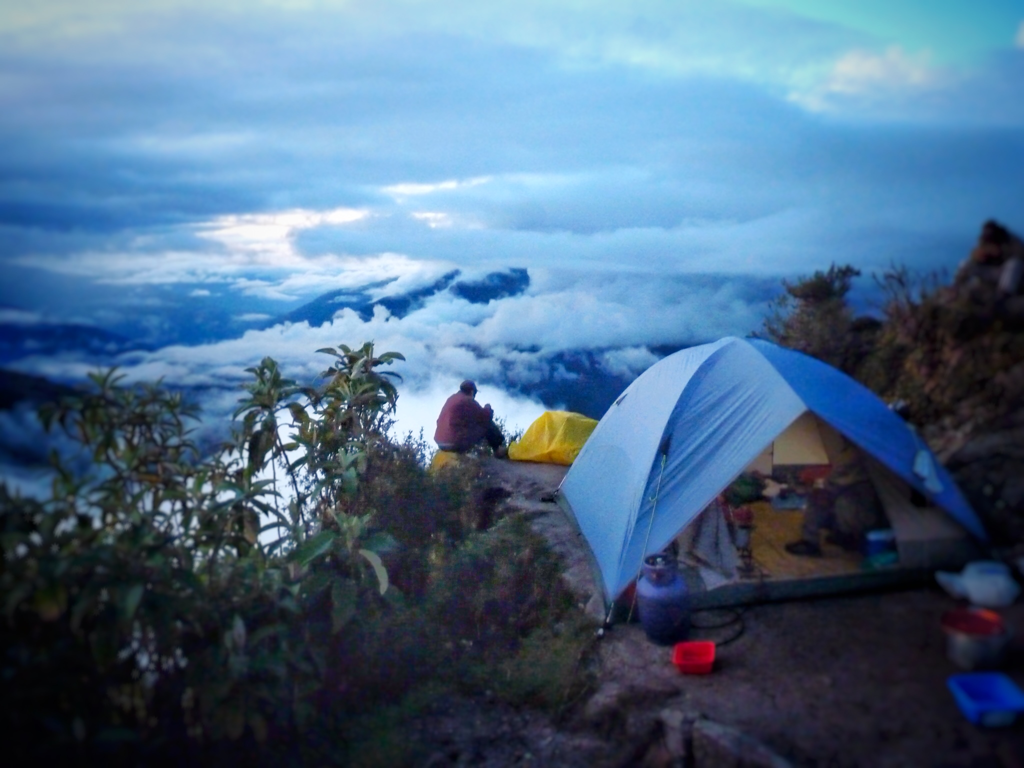 As night drew in and the clouds below us dissipated the surrounding mountains were gradually revealed to us and snow capped peaks could be glimpsed in the distance. This was a beautiful place to camp and I have never before or since spent a night under canvas in such an amazing setting.