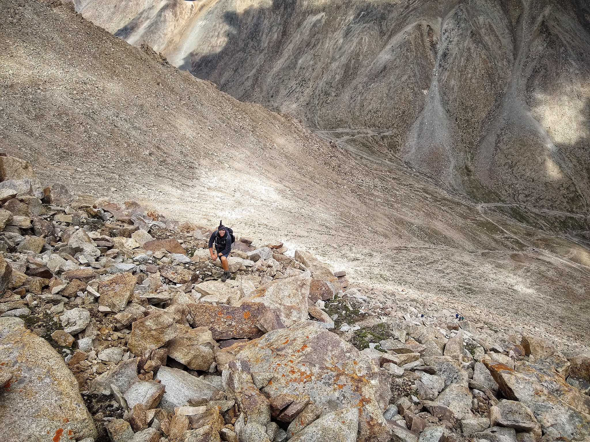 I forged a relatively steep line up the boulders attempting to push myself as far as I was comfortable with, but also mindful not to over exert myself as we were still acclimatising. I topped out on what was universally agreed to be the highest point of this unnamed pile of rubble above the pass.