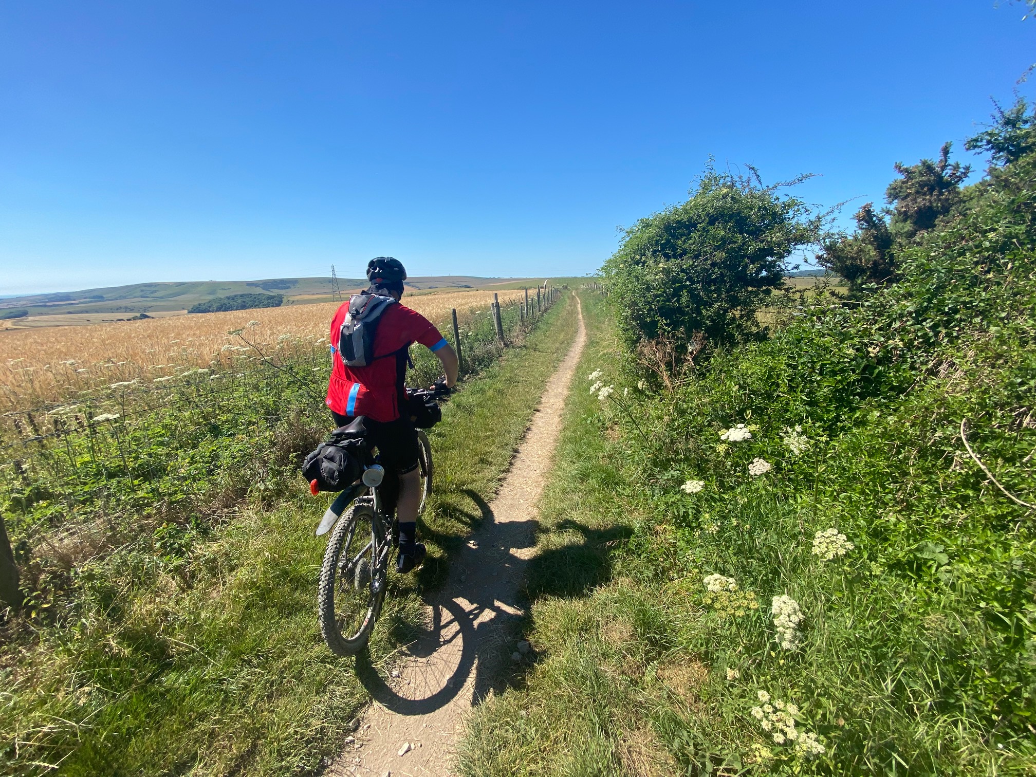 It’s not all chalk downs along the route and we passed through several wooded and shady areas giving the opportunity for the obligatory MTB against logs backdrop photo opportunity that all good bikepacking adventures have to have!