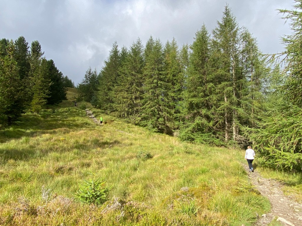 Leaving Rowardennan The West Highland Way followed mainly forestry roads before then gently climbing high up above the Loch where we were rewarded with fantastic views over the water towards the peaks of the Arrochar Alps in the distance.