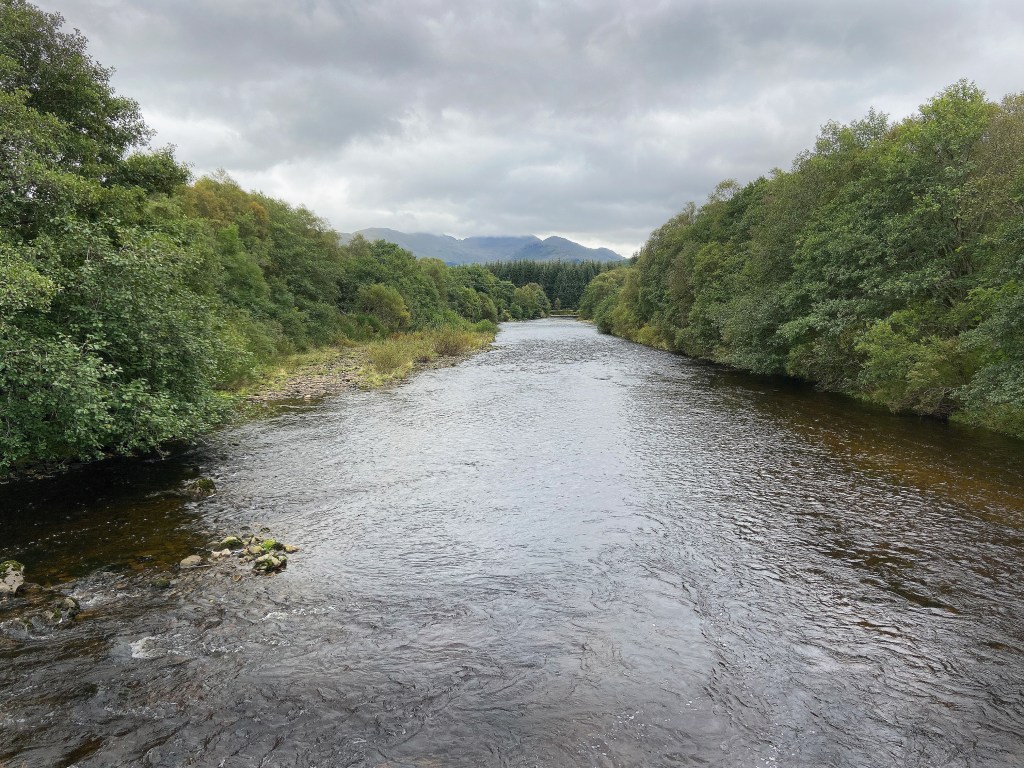 Crianlarich is the halfway point in terms of mileage along The West Highland Way and this thought put a spring back in our steps after a lacklustre morning of walking. After Crianlarich we entered a stretch of secluded woodland walking before making our way back to the valley floor and through farmland surrounded by towering highland scenery.