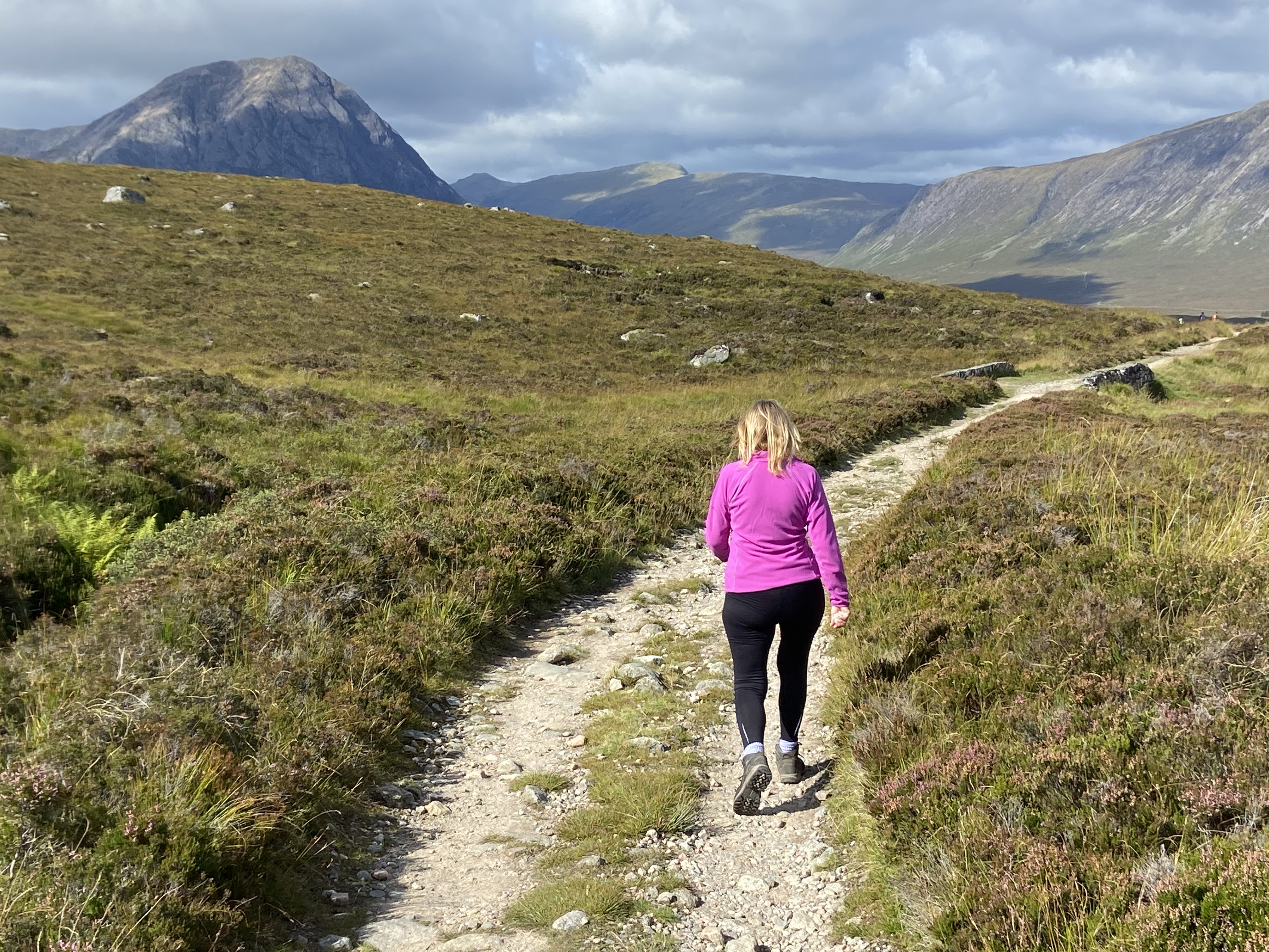 Although we could see the famous Kingshouse Hotel some distance away down in the glen it appeared to take an eternity to reach it. But the mountain scenery was off the scale, so we didn’t mind too much although our feet were throbbing.