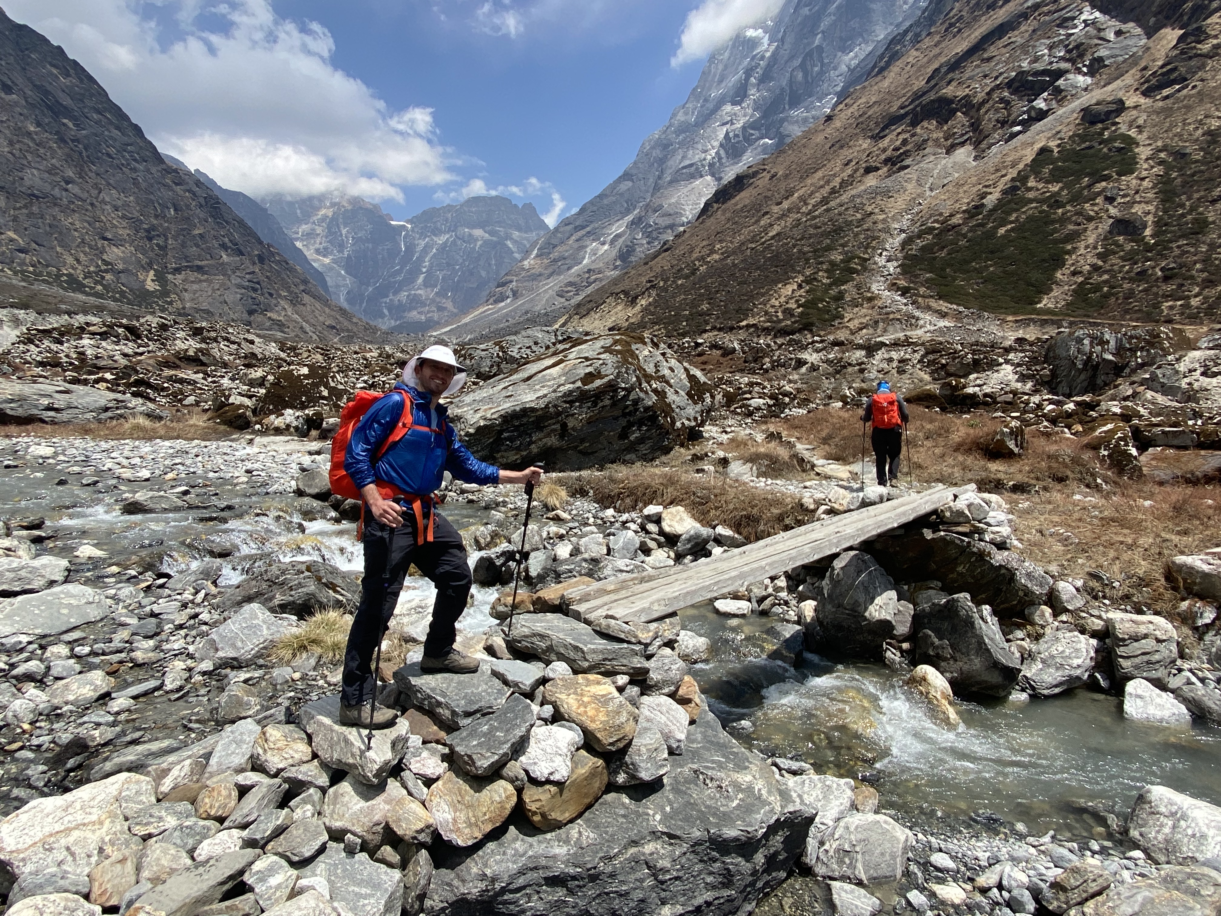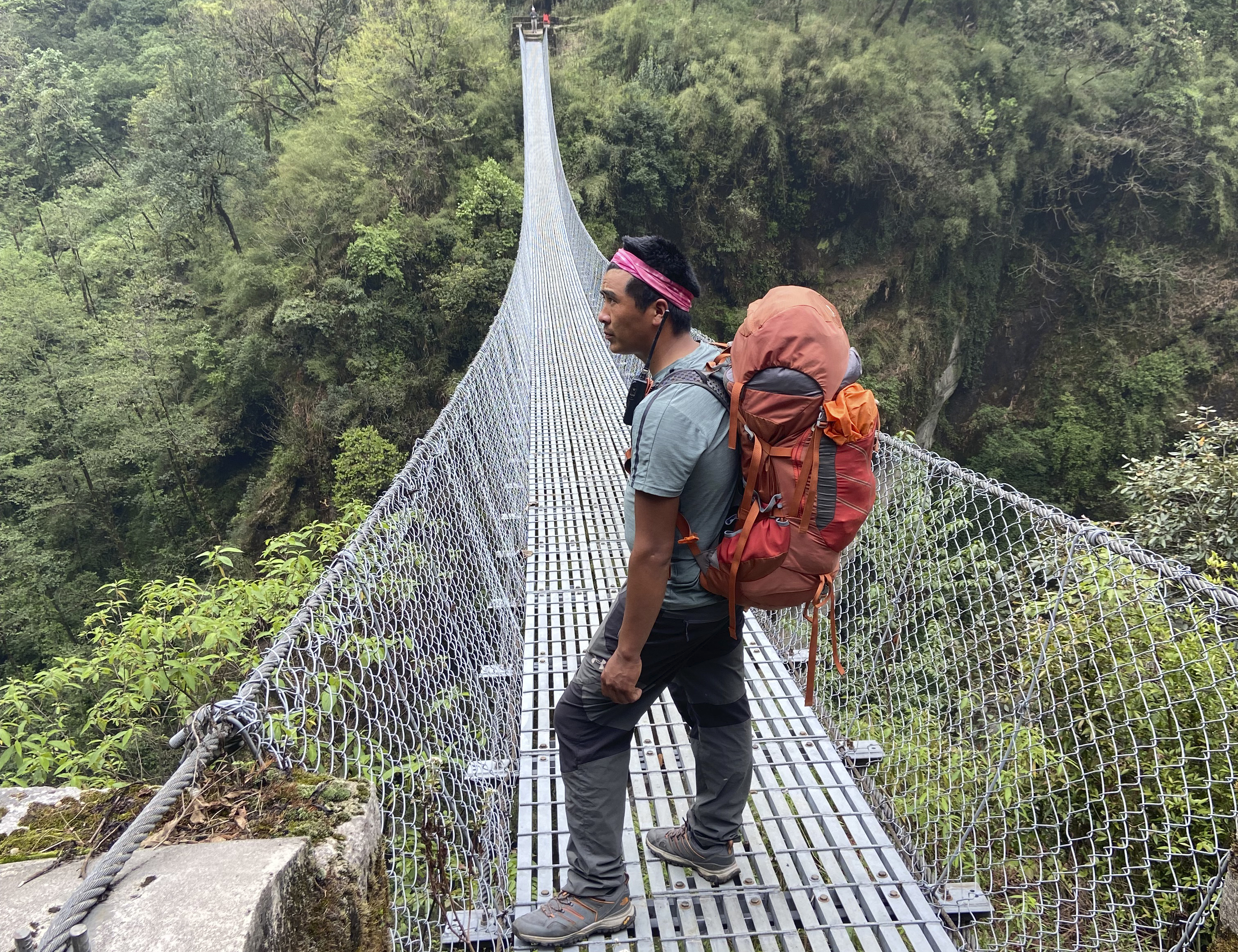 As we went deeper on and into the trek we proceeded to cross many precariously hung and extremely high suspension bridges, strung across various gorges and ravines. Below us were beautifully clear glacial rivers gushing at speed along the valley floors.