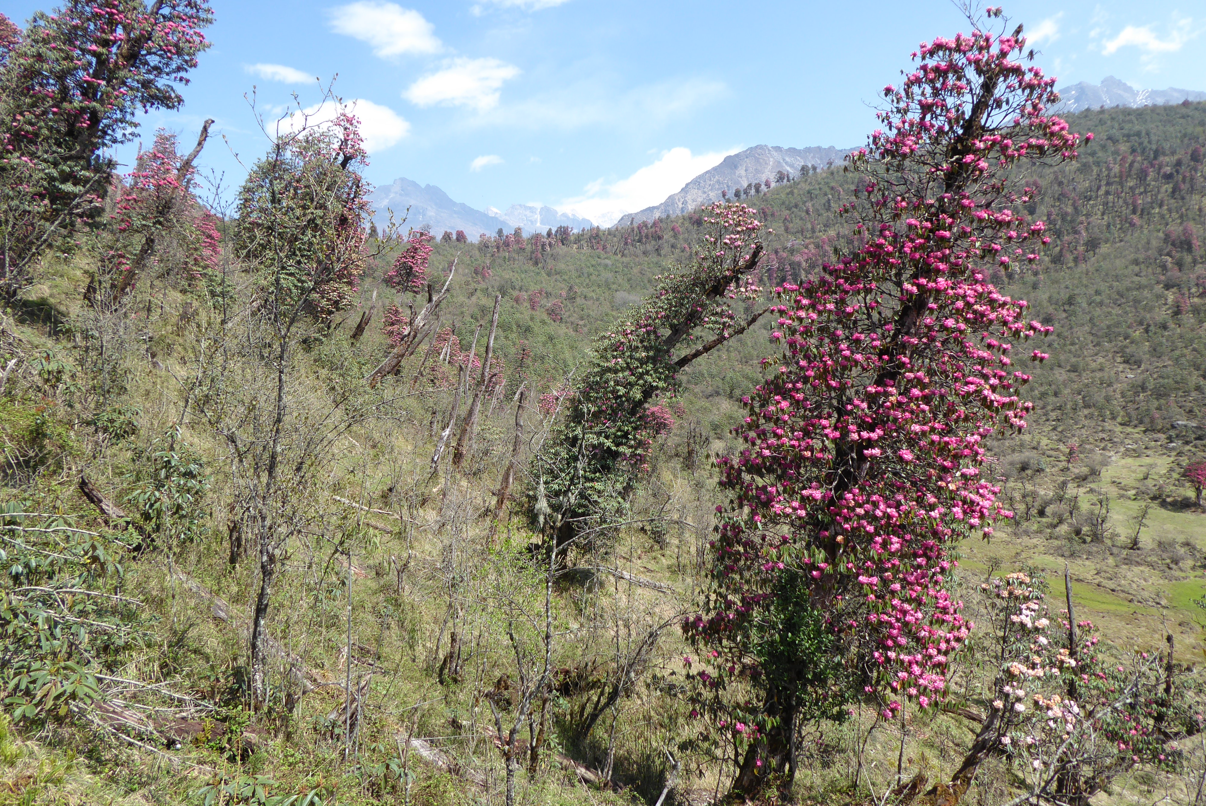 The countryside we trekked through initially was a mix of arable farmland and steamy forests which eventually gave way to vast Rhododendron Forests fringed by snow capped mountains before eventually turning into the high alpine.