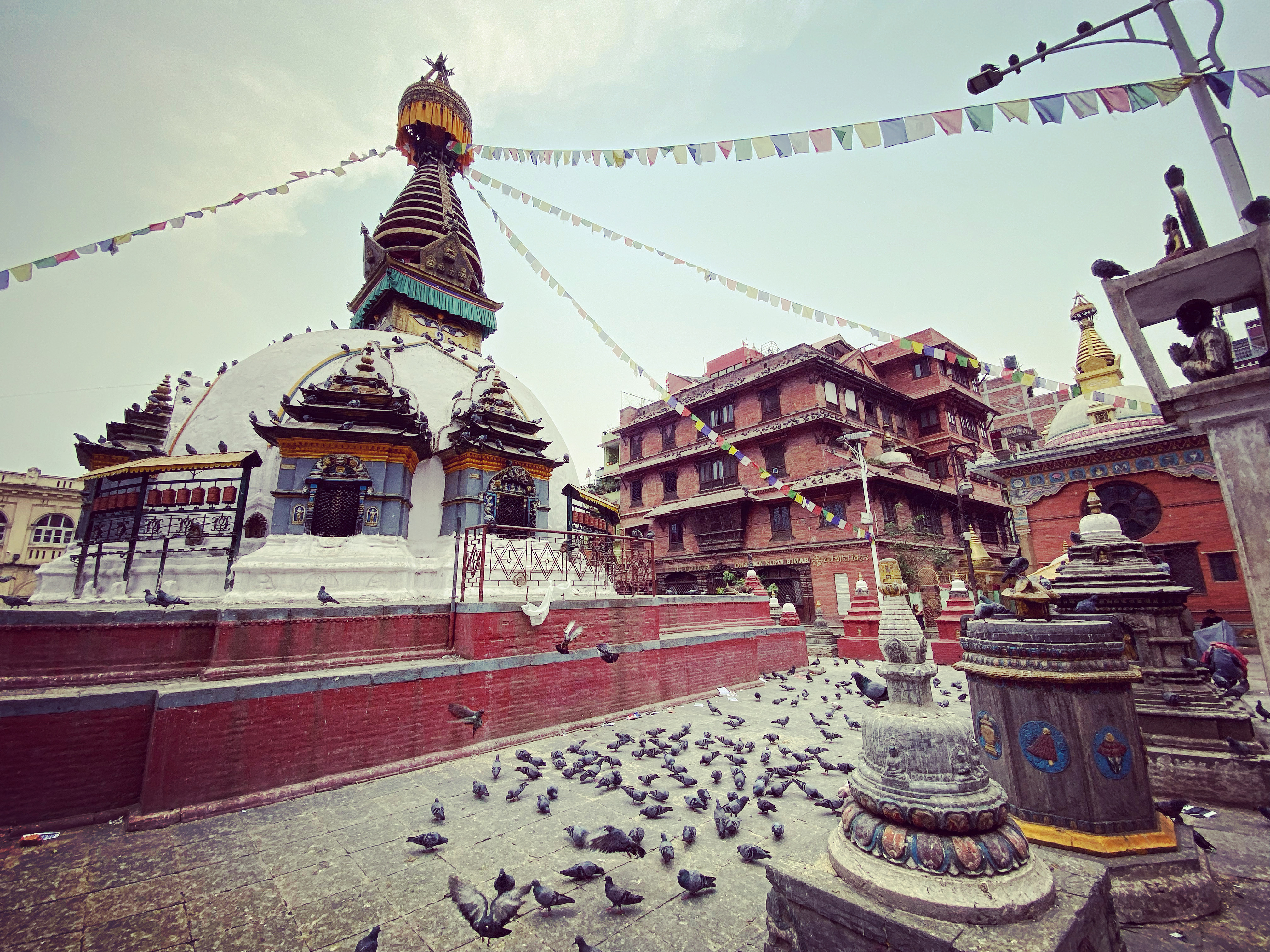 The base of the stupa tower is decorated with pairs of eyes on each of the cardinal directions representing the all-knowing nature of the Buddha. Beware you are being watched!