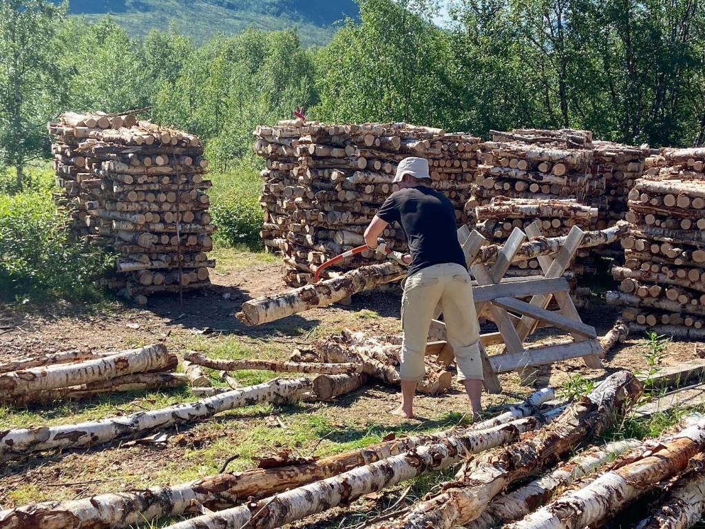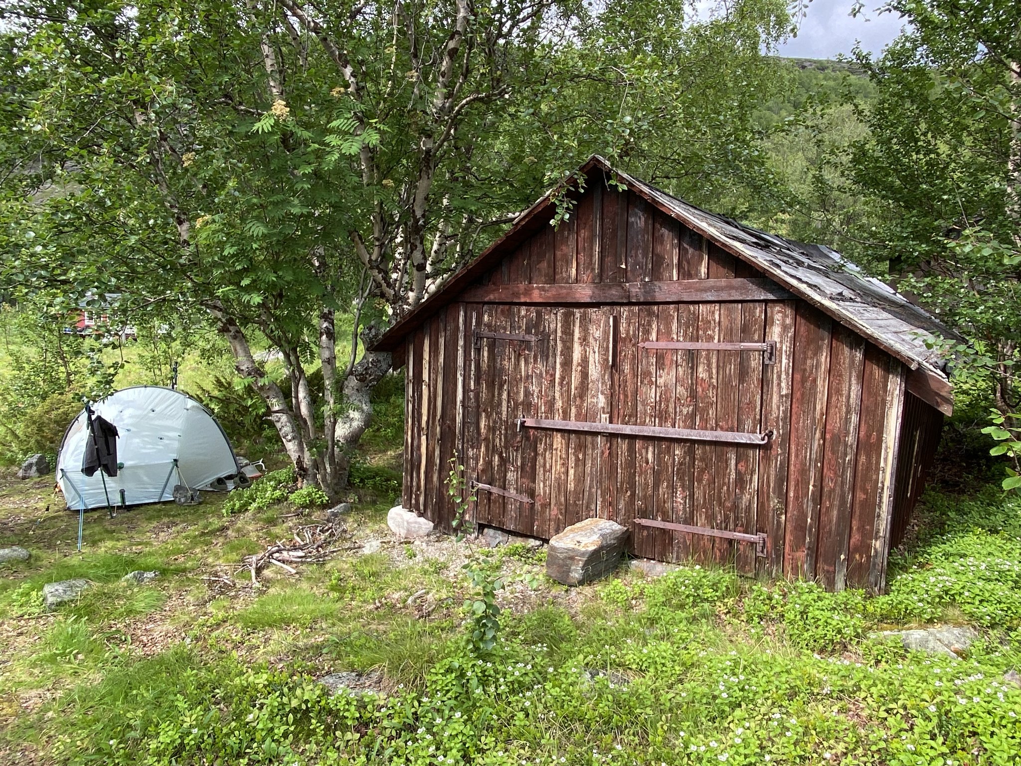 Abiskojaure Fjällstugor. We camped at the fell station on our first night on The Kungsleden Trail. A beautiful spot on the edge of a lake. Secluded beach, forest camping, and some amazing log piles amongst the wooden cabins. An idyllic spot.
