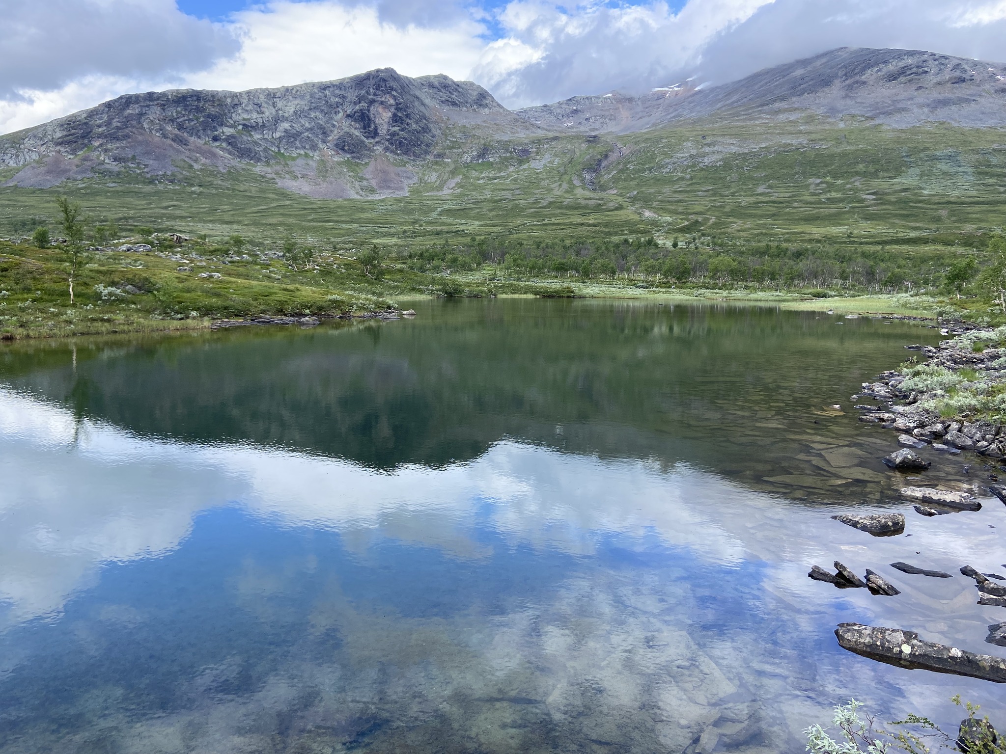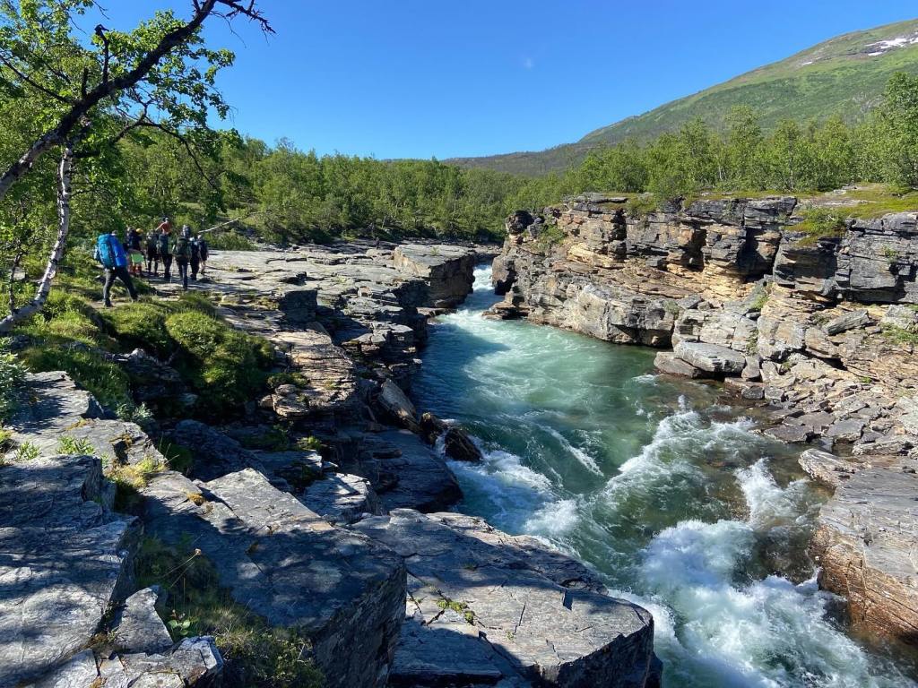 We experienced beautiful weather. The scenery was stunning as we followed the Abisko River down through the Abisko National Park. Finally, we reached Abiskojaure Fjällstugor, which is 14 km to the south.