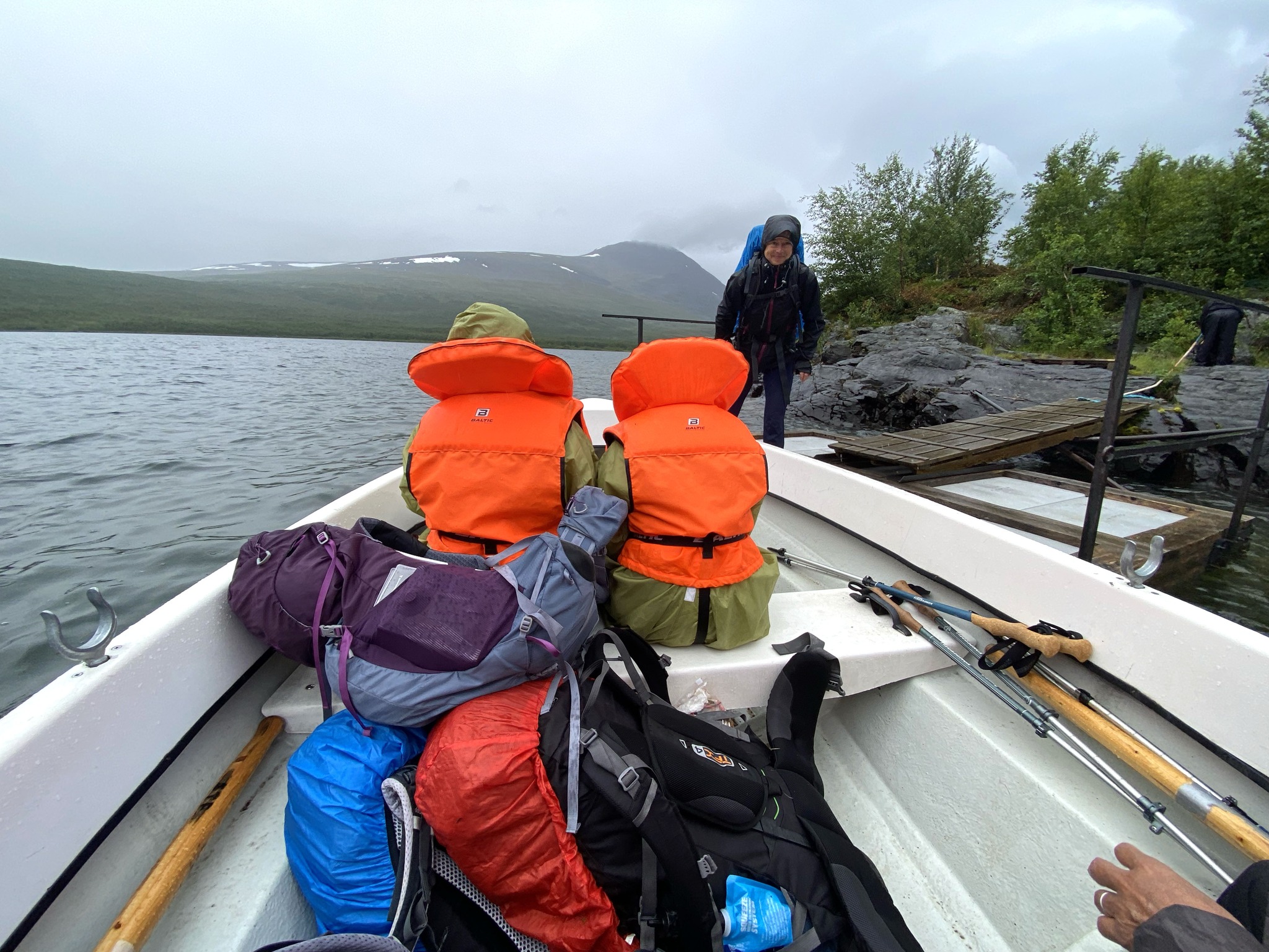 The last days hike! After a peaceful if mosquito ridden night at Teusajaure we woke up for the early ferry across the lake. The cabin warden from the fjällstation also provides the ferry service. For a small fee, we were ferried across the spectacular lake in the morning drizzle.
