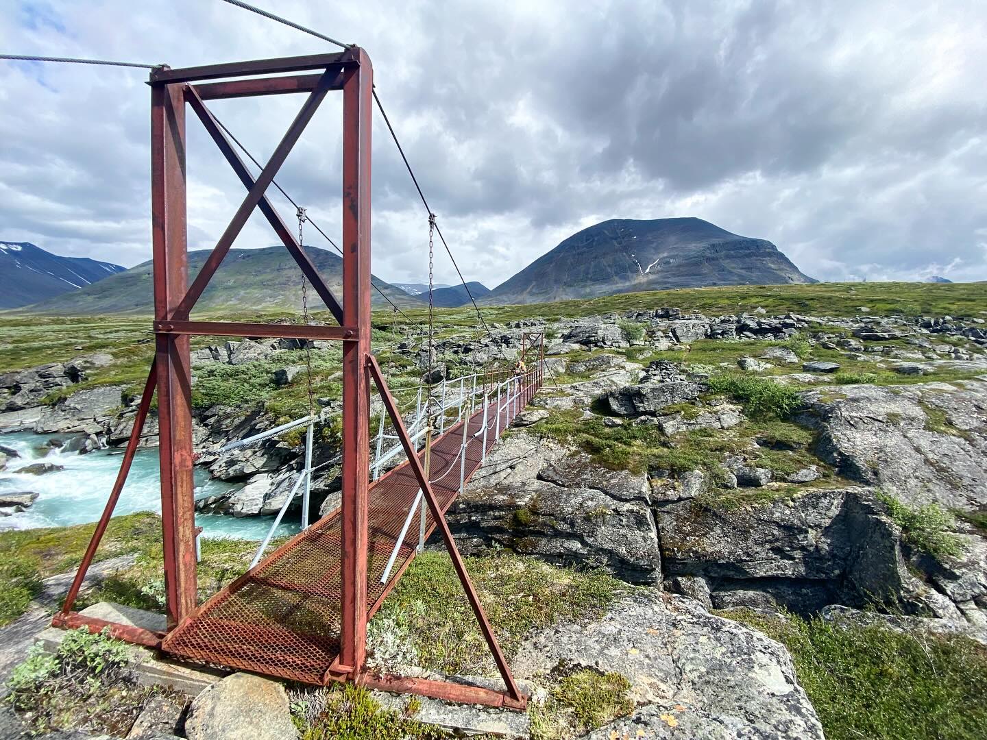 The day started off with a descent towards the fast flowing Kaitumjakka river. We encountered another magnificent chain bridge to cross.