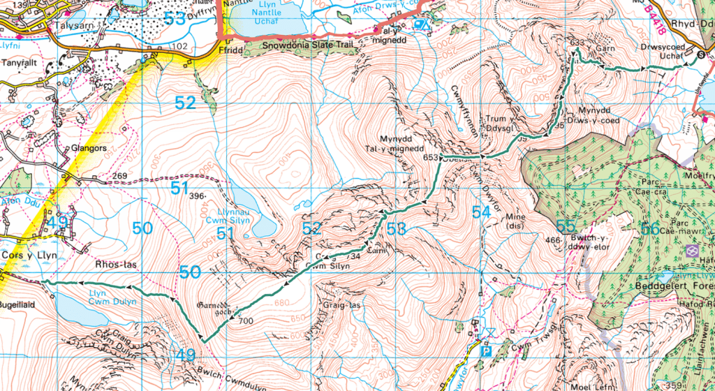 If you have two cars, it is by far the best way to tackle the logistics. We hiked one way from east to west. We started from Rhyd Ddu. First, leave a car at the end point in Nebo.