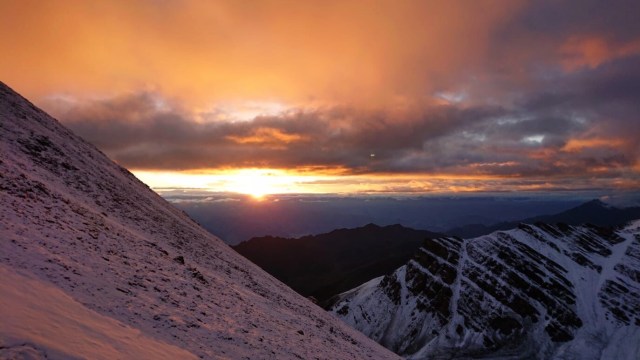 We clambered up to the col with all the same gear on that we would be using for our summit attempt affording us the opportunity to tweak and check that everything was comfortable and working correctly. It was the first outing for my B3 insulated boots so making sure they felt comfortable and that they would not cause me any blisters was important. I checked my insulated hydration bladder was working which it was and made sure my layering set up was warm enough.