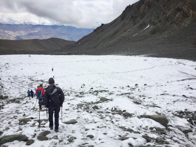After many hours of slogging over moraine and scree our ragtag group all made it back down to base camp.