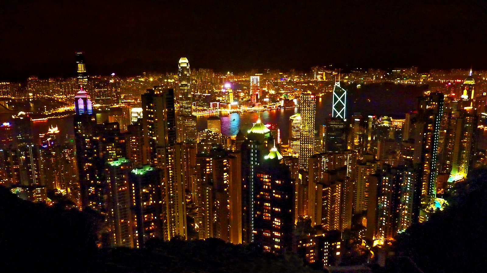 This particular shot was taken during a sultry evening from up high on ‘The Peak’ on Hong Kong Island. I took it from the small but beautiful, (and incredibly crowded), Peak Pagoda. No city in the world quite looks like Hong Kong does at night!